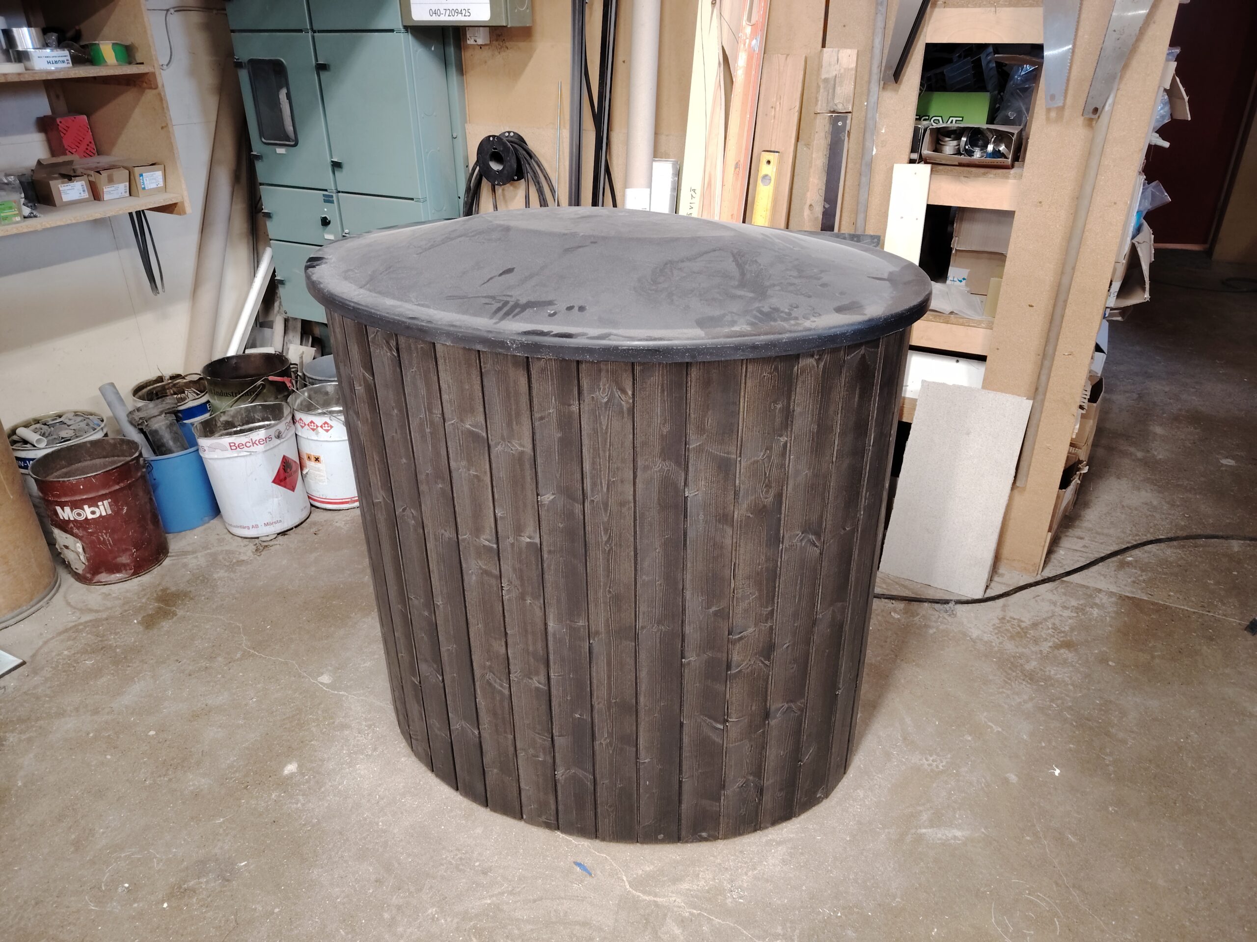 HUOM!! Kansi ei istu kunnolla paikalleen altaan ollessa täynnä! Allas levenee hieman keskikohdasta kun se on täynnä vettä.